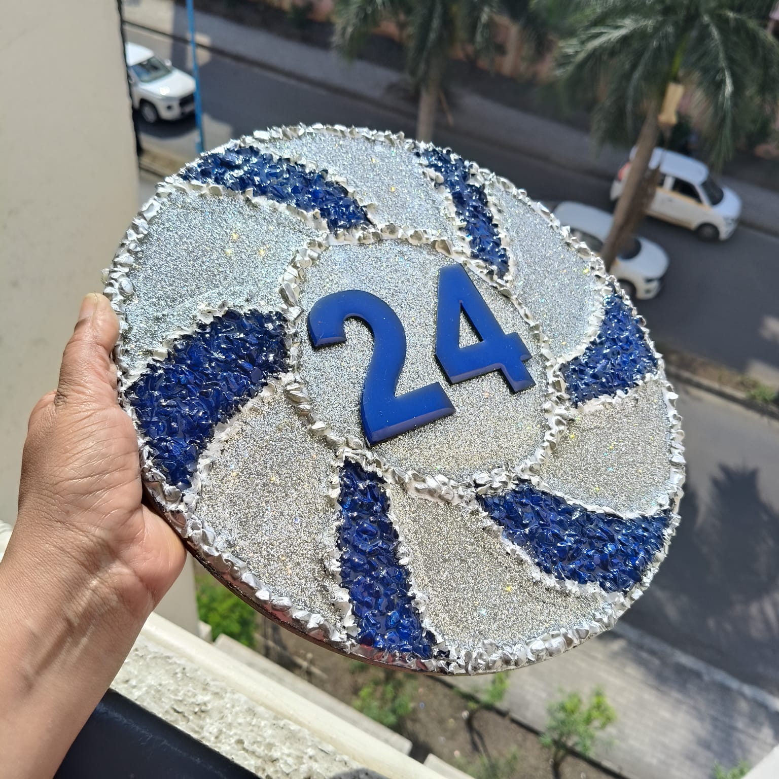 This bold Number 24 decor piece features striking blue swirl segments on a sparkling silver base, symbolising movement, growth and strong protective energy.The deep-blue 24 at the centre acts as a powerful symbol of luck, wealth, stability and success.
