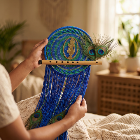 Krishna’s Melody: Dreamcatcher with Real Flute for Peaceful Vibes